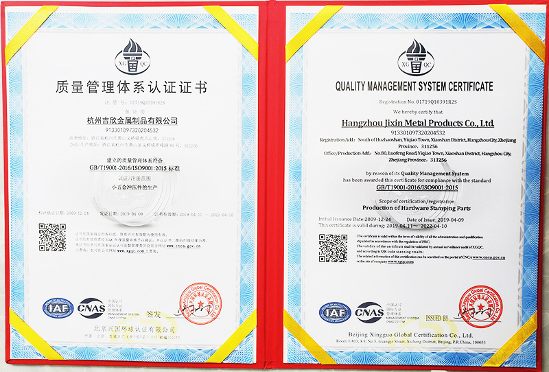 杭州吉欣金屬制品有限公司成立于2001年,坐落在風景秀麗的中國杭州市蕭山區(qū),占地面積15畝,有6000平方標準廠房。本公司是一家專業(yè)設計和生產沖壓系列產品的企業(yè),主要產品包括汽車配件、鉸鏈系列、拉手系列、掛鉤系列、拉伸件、支架、開關面板、電器盒、焊接件,滑輪組件,門窗配件,家具五金等。